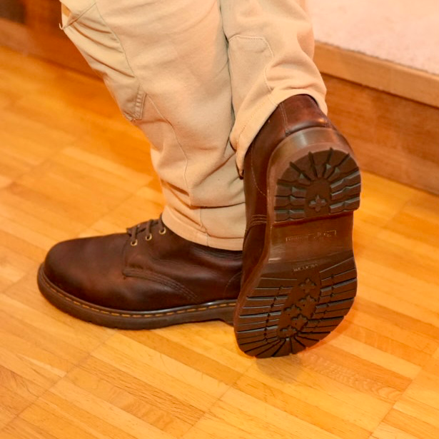 Eine große Leidenschaft sind Dr. Martens Schuhe. Auch diese Sohlen können wieder neu aufgebaut werden und weiter geht's.